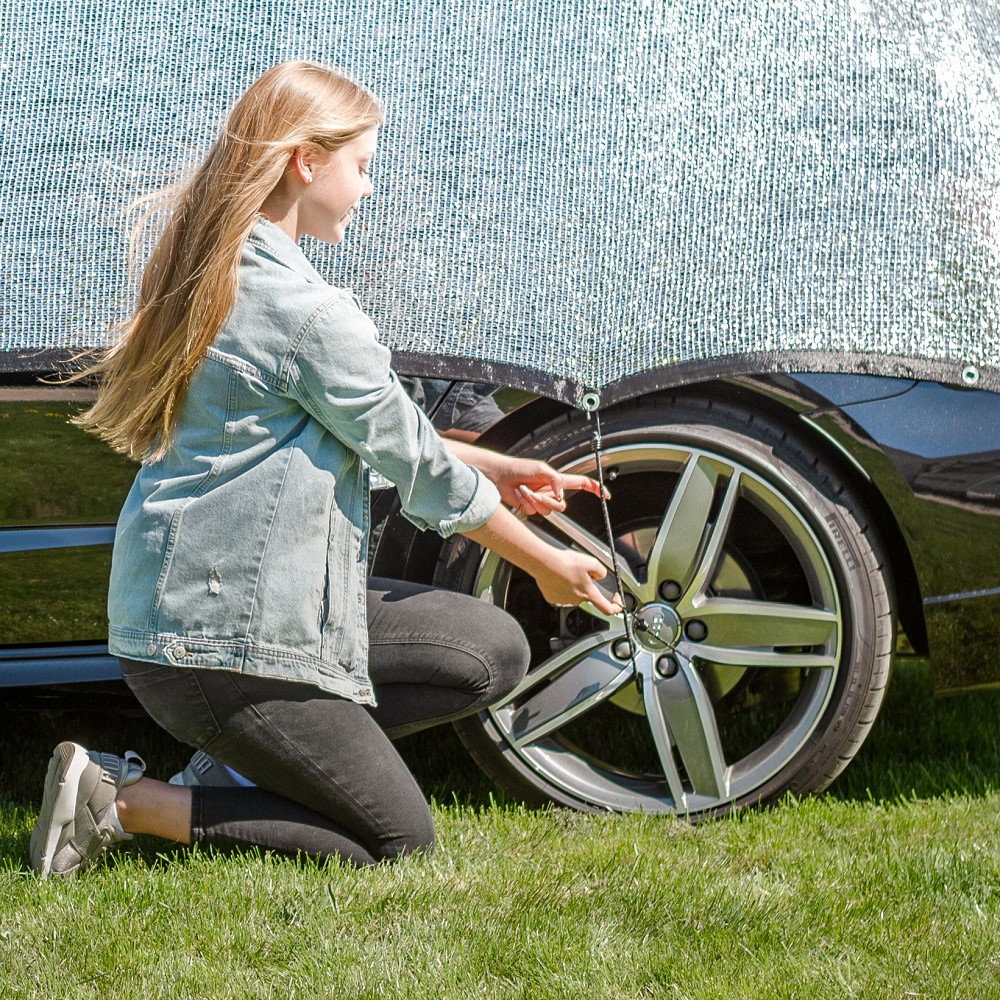 Damit ist der Innenraum deines Fahrzeuges, jeglicher Tieranhänger, des Pavilions oder auch deines Zeltes ideal vor der Sonne geschützt und es bleibt deutlich angenehmer als bei direkter Sonneneinstrahlung. Somit ist das Alunetz der ideale Schutz für dich und deine Vierbeiner. Gerade für Hundebesitzer welche mit dem Auto unterwegs sind ist es ein mobiler Schattenparkplatz, der mit einem Gewicht deutlich unter 1kg problemlos überall mit hingenommen werden kann. An den Ecken des Netzes befinden sich Ösen zur Befestigung des Netzes so das ein Verrutschen auch bei Wind durch die Befestigung des Netzes ausgeschlossen wird.